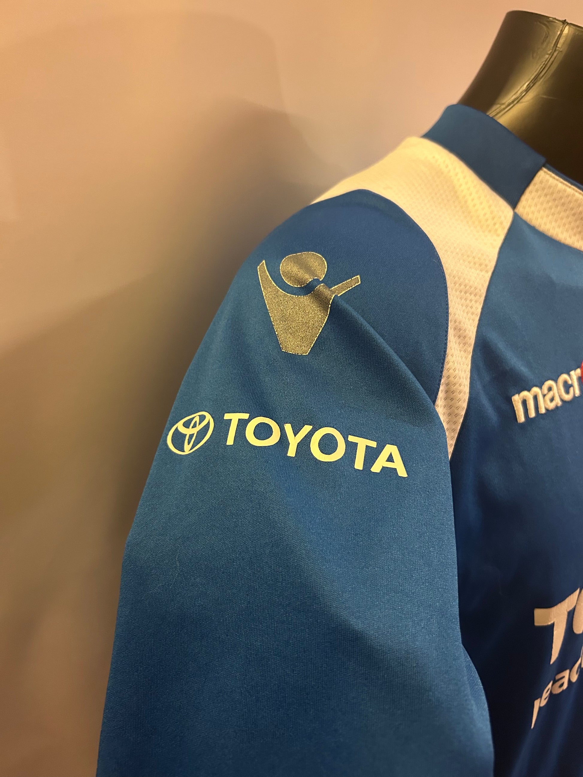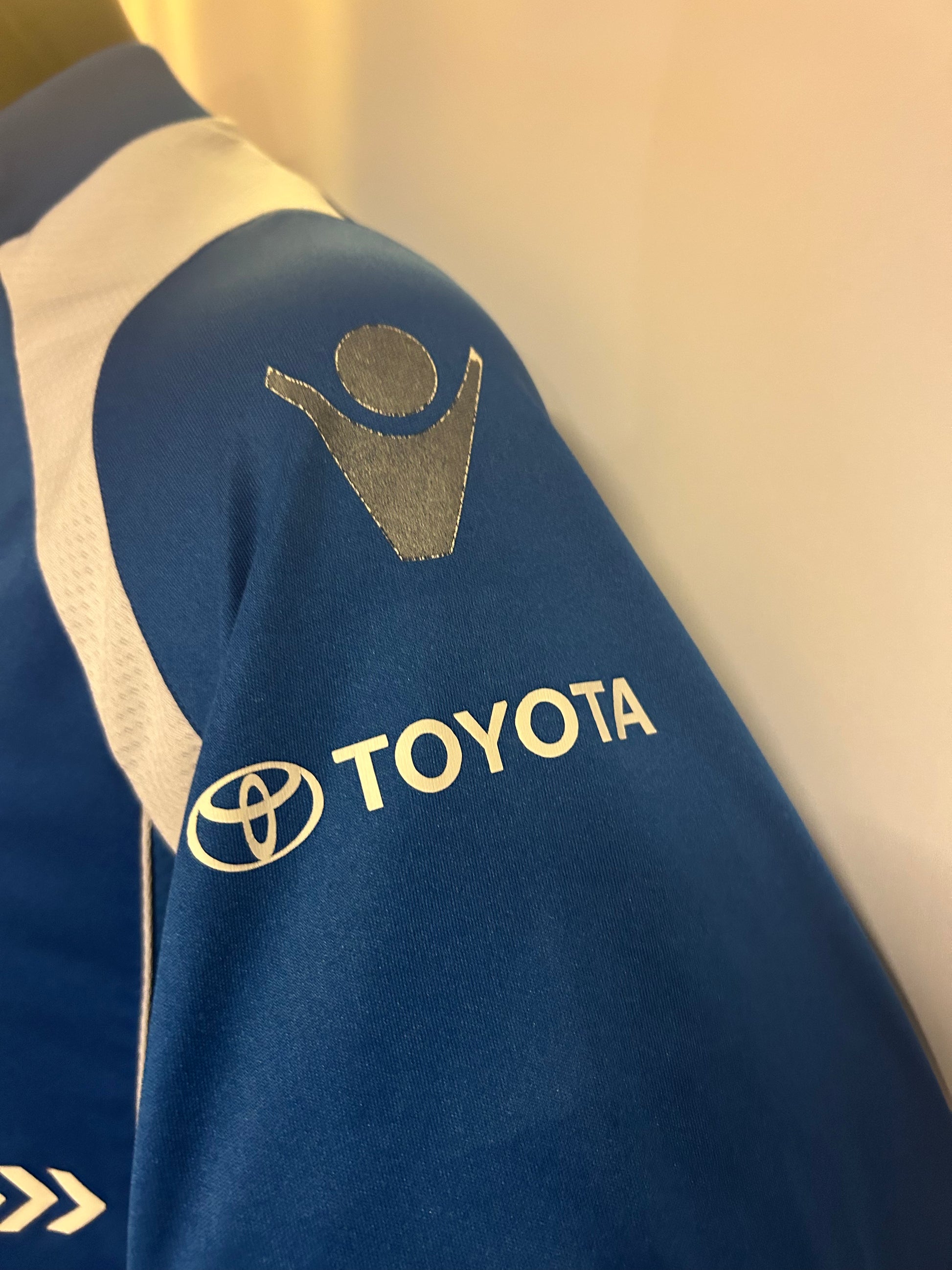 Hjemmedrakt fra den Nederlandske klubben FC Den Bosch. Denne er i medium. Drakta er i fin stand men du kan se antydning til sprekker på bla. sponsoren. Macron merkene på skuldrene har flasset av. Ikke ofte du ser denne.