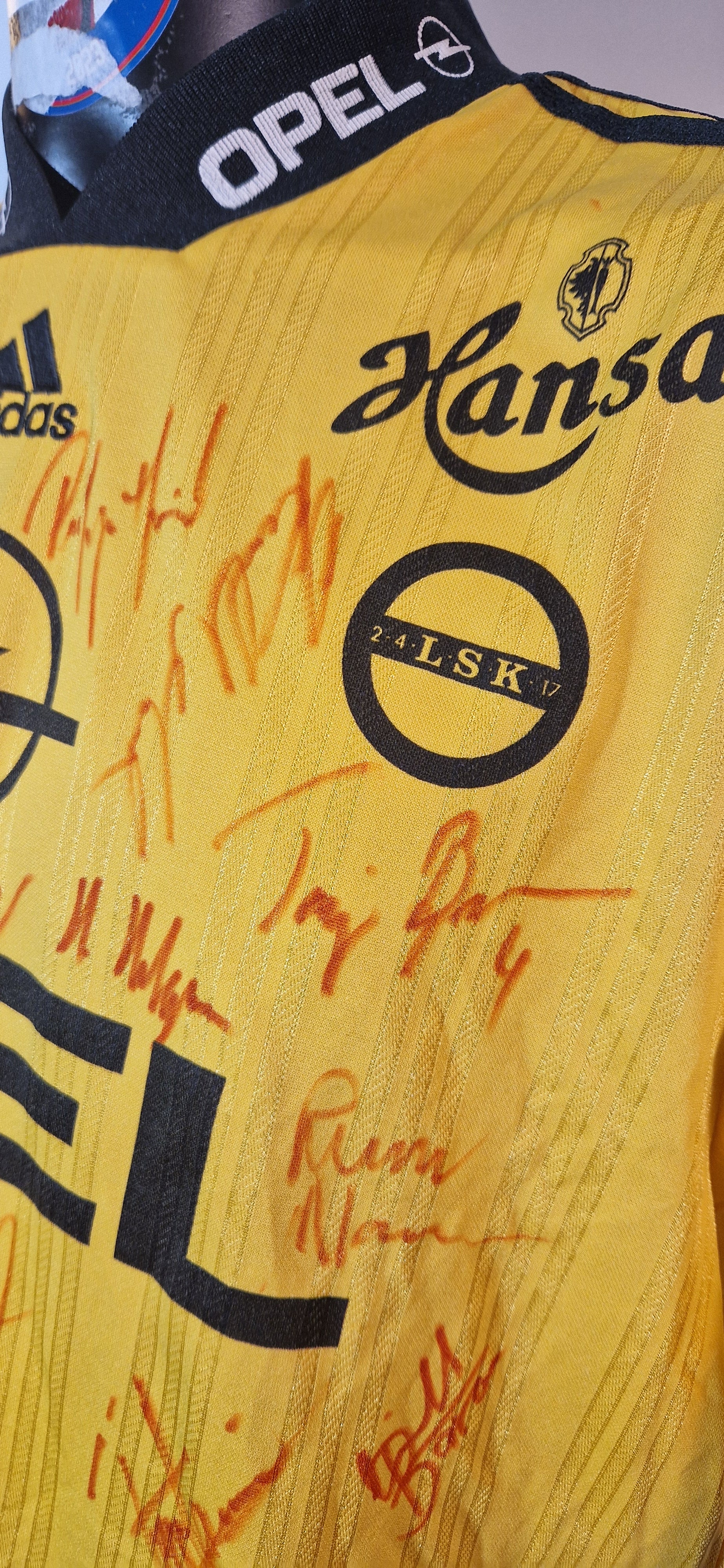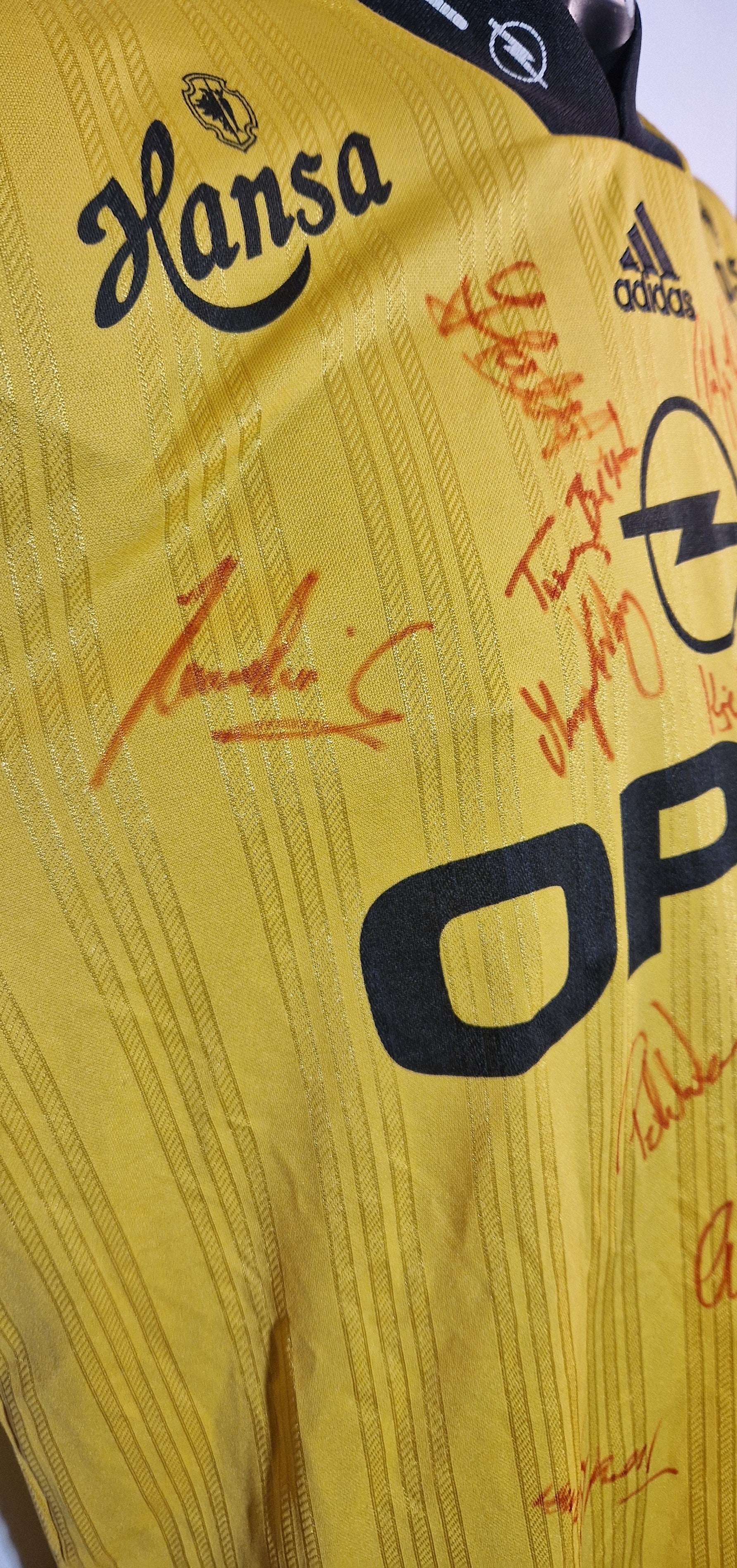 Signaturer på drakten er fra spillerne (uklart om alle på laget har signert). Helt unik sak, som er en "one of a kind" drakt. Meget god stand.