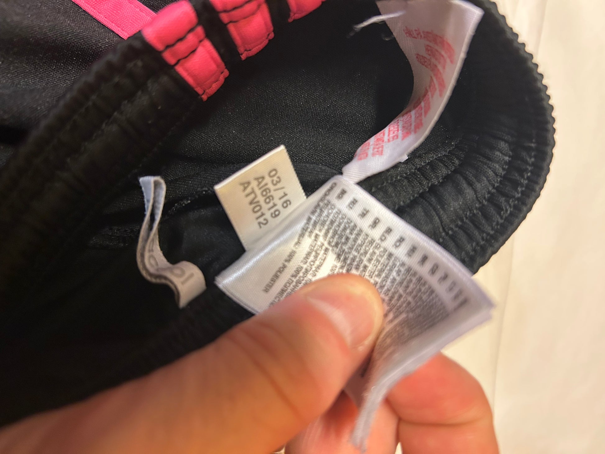 2 flekker synlige ved badge. Uklart om disse går vekk vi i vask. Med litt skrape og Vanish så går det nok bort. Rosa og svart er kult.