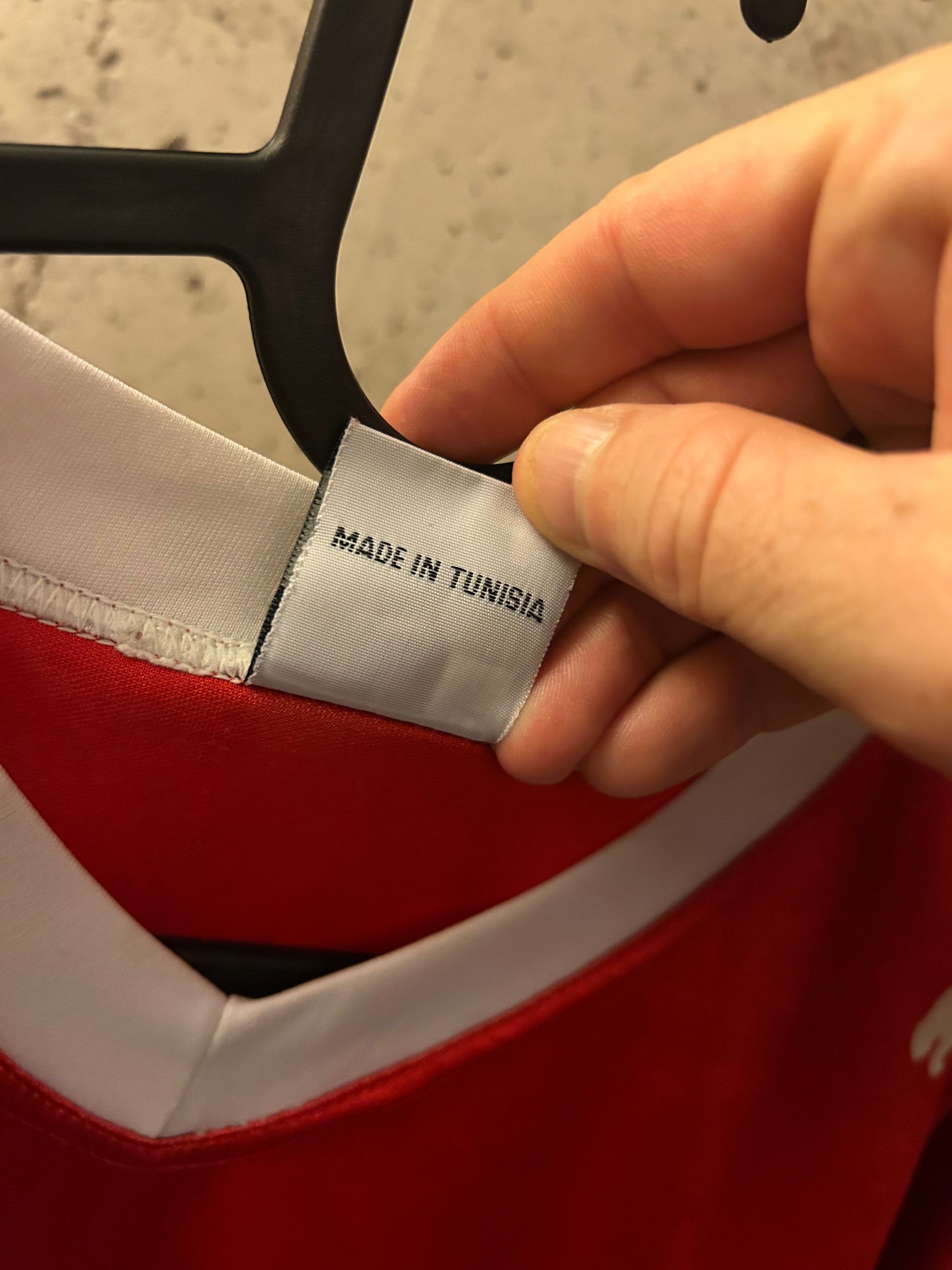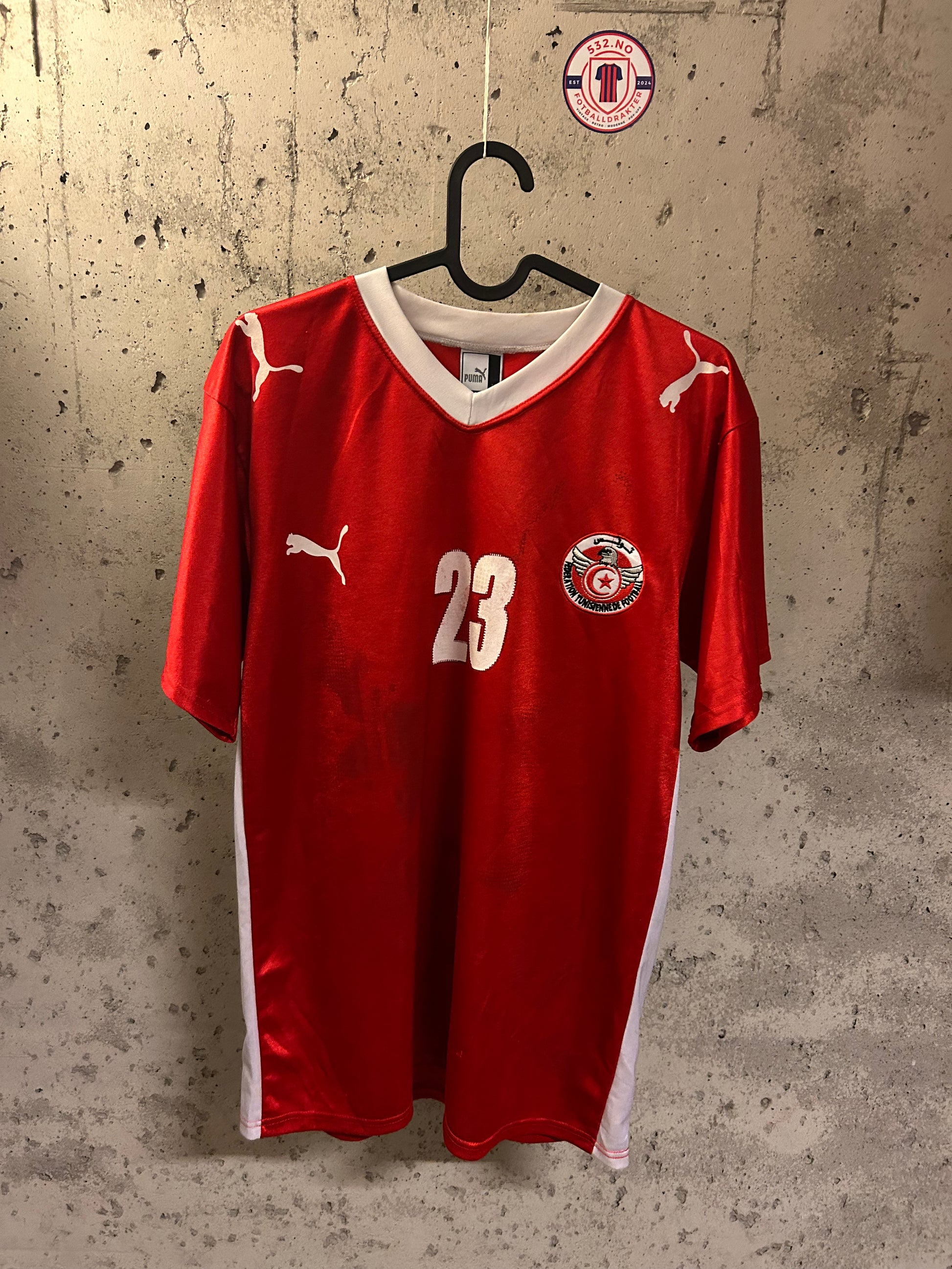 Bortedrakt fra 2008 i størrelse medium. Drakta er solgt i Tunisia og er ment for det Afrikanske markedet. Her har vi sjekket med Tunisk draktekspert.
